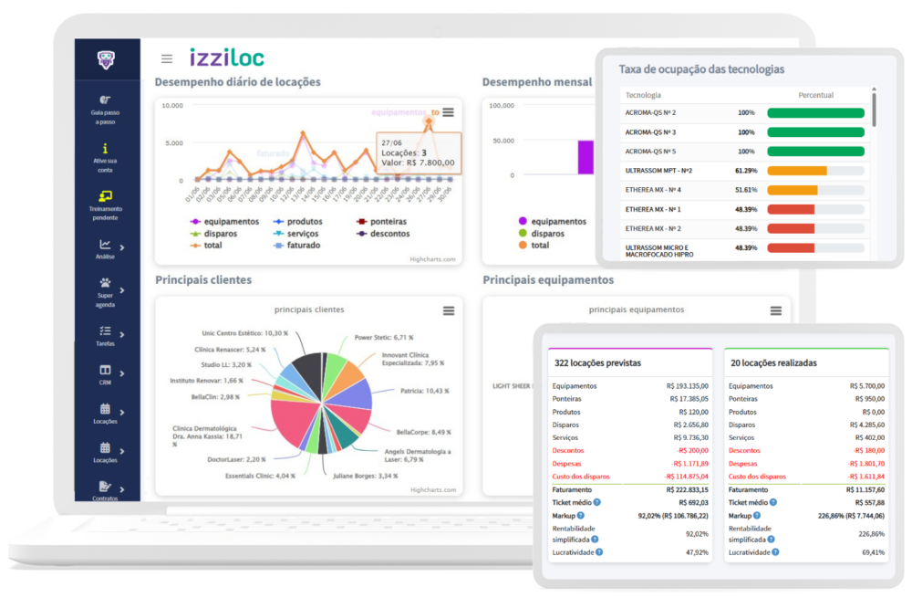 O izziloc® é um ERP completo feito exclusivamente para locadoras de equipamentos estéticos à laser.