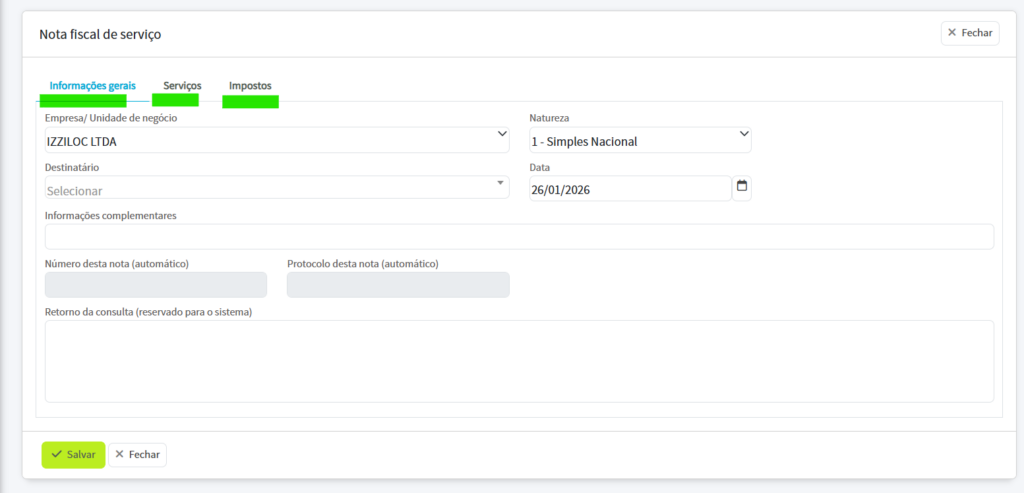 Para emitir Notas Fiscais de Serviço (NFSe), primeiramente é necessário que sua empresa esteja homologada com ajuda da sua contabilidade, conforme explicado no artigo: https://izziloc.com.br/docs/o-que-preciso-para-emitir-notas-fiscais/