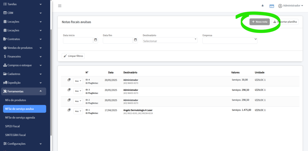 Acesse MENU > Ferramentas > NFSe de serviço avulsa